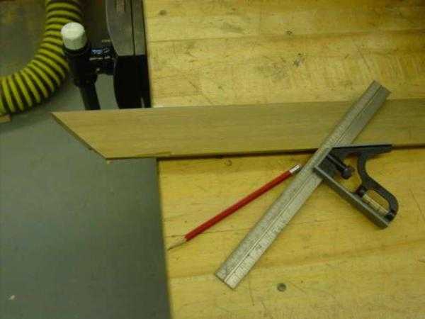 После того, как отрезали первую сторону, у вас останется угол 45 градусов на конце доски. Вы должны обрезать конец под углом 135 градусов.