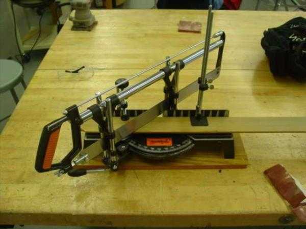 Инструменты слева являются необходимыми: митер — пила, клей по дереву, комбинированный угольник на 90 и 45 градусов, карандаш, стяжные ремни.