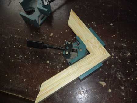 Во-первых, обрежьте конец доски под углом 45 градусов. С одного конца вырежьте под углом 45 градусов, с левой стороны получится угол 135 градусов. Вершина угла будет на внутренней стороне рамки. (Смотрите на фотографии).