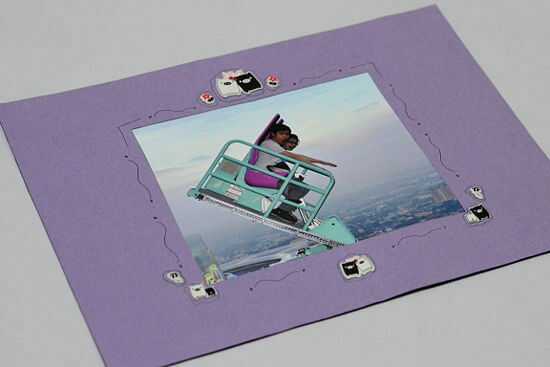 Когда вы определились с расположением картинок на рамке, можно их приклеивать. Приклеивать лучше клеем-карандашом. Другой клей размачивает бумагу и от этого картинки портятся, искажаются. Начните с фоновых картинок (кстати, их края можно вырезать волной или с помощью других фигурных ножниц) или с тех которые вы обязательно хотите чтобы были на вашей рамке. В процессе приклеивания набор картинок и их местоположение может поменяться, главное чтобы в итоге рамка была гармоничной. Интересно смотрится когда одна картинка приклеивается сверху другой (например, как солнечные очки, шляпа на матрешке), чтобы в целом создавалась необычная, веселая композиция.