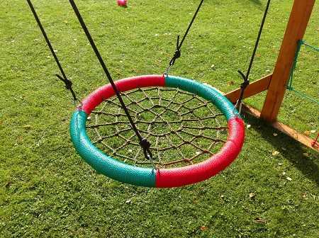 Кроме того, популярностью пользуются и качели-гнезда, представляющие собой как правило круглую сетку, диаметр которой позволяет использовать их как одному ребенку, как и нескольким.