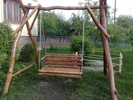 Устройство качелей осуществляется полностью самостоятельно или частично с использования готовых элементов крепежей и соединителей, а также самих сидений, которые есть в продаже (в этом случае потребуется сделать только основу).