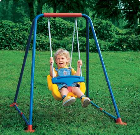 Даже при регулярных напоминаниях детям о том, как следует себя вести, никто не застрахован от падений или ударов. Поэтому при выборе детских качелей для дачи — подвесных или напольных — рекомендуется отдавать предпочтение тем, конструкция которых не позволяет излишнее раскачивание, чреватое падениями.