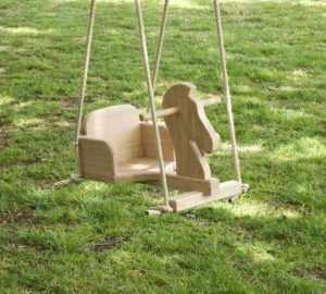 Чтобы продлить жизнь детским качелям, укрывайте их от плохой погоды. Деревянные стержни можно было покрыть пчелиным воском. Если ваш ребенок еще мал и не совсем заполняет качели, вы всегда можете подложить свернутое одеяло или небольшую подушку ему под спинку.