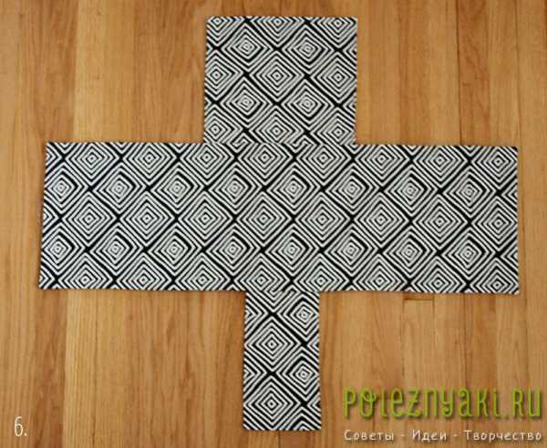 Шаг пятый: На полученную заготовку сверху положите вторую часть сидения лицевой стороной внутрь. Аккуратно совместите края ткани. Начинайте прокладывать строчку примерно в 7 см от угла одного короткого конца прямоугольника, сшейте части ткани по периметру, оставив 7 см от края. Выверните сидение на лицевую сторону, удалите наметку или булавки, расправьте углы.
