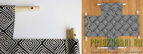 Шаг восьмой: Сложите каждый край каждой панели внутрь так, чтобы стержень плотно входил в отверстие. Удерживая на месте ткань, удалите стержень. Для прочности отворачивайте ткань с запасом, чтобы можно было сделать две строчки на расстоянии 1 см друг от друга и 0,5 см от края ткани. Приметайте край ткани или закрепите булавками. Прошейте на машинке, удалите закрепки.