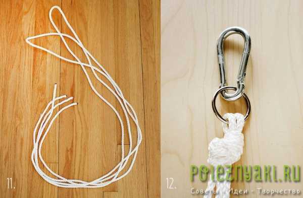 Шаг одиннадцатый: Разрежьте веревку на две части, и с помощью зажигалки запаяйте концы. Это позволит избавить их от осыпания.