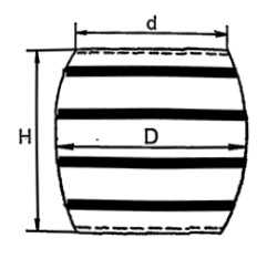 Высота больше диаметра по середине на 20—25%; диаметр по середине больше диаметра торца на 15%.