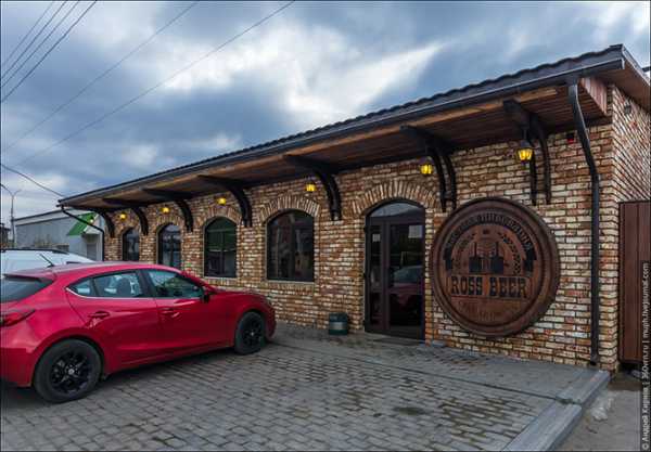 Увидев мою заинтересованность подобной продукцией, Александр предложил прокатиться до соседней улицы, чтобы показать уже готовый интерьер, в постройке которого он и его ребята принимали самое непосредственное участие. Фотографировать вечером субботы в пивом баре я не решился, но фасад щелкнул. По-моему, очень здорово. Особенно на фоне других провинциальных заведений и магазинов, отделанных сайдингом и с безвкусными вывесками.