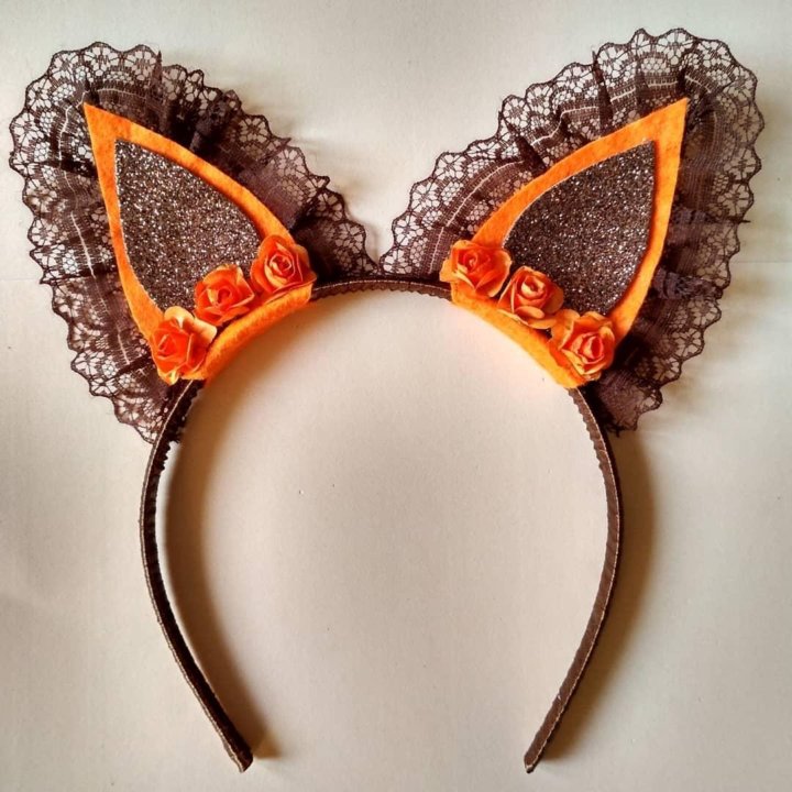 Из чего только не делают ушки для ободков: из меха, кружева, веточек, цветов и бантиков. Дополняют блёстками, помпонами, перьями, бусинами или стразами. Главное – сделать украшение в виде ушек милым и неповторимым.