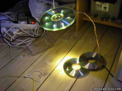 Помимо люстры, диски можно использовать и для ночника своими руками