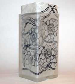 На кальке нарисуйте мотив или используйте распечатанные клипарты. Обведите контуры спиртовым маркером.- Слегка намочите кальку водой, это необходимо для того, чтобы наклеить рисунок на внутреннюю сторону светильника.