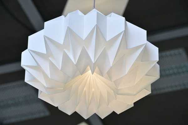 Необычную люстру можно сложить даже из оригами. Светильник-хендмейд гармонично впишется в интерьер молодежной квартиры-студии.