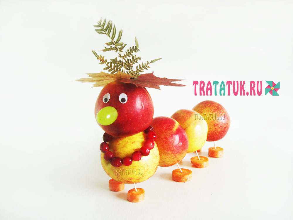 Как сделать гусеницу из яблок для осеннего праздника
