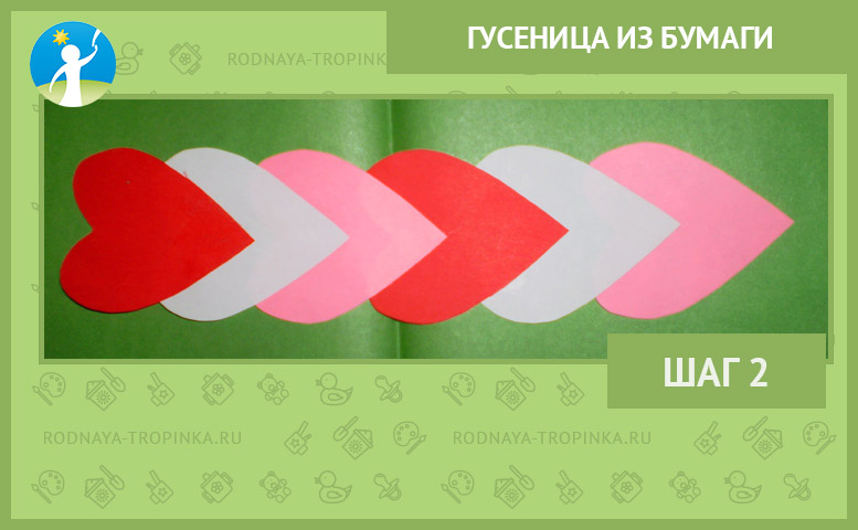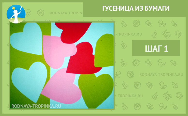 Наша гусеница из бумаги будет состоять из элементов — сердечек.