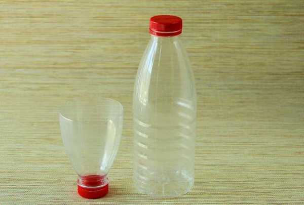 Берем бутылку с большим горлышком и отрезаем верхушку, это будет форма для ножки гриба.