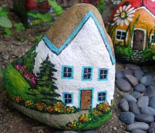 При применении булыжников, их можно раскрасить, используя влагостойкие краски, и выкладывать из них на цветочных клумбах или зеленых газонах разные фигурки – божьи коровки, черепахи и другие. В вашем садовом «зоопарке» вашими стараниями могут обитать лягушки, утки, зайчики, котики, ежики.