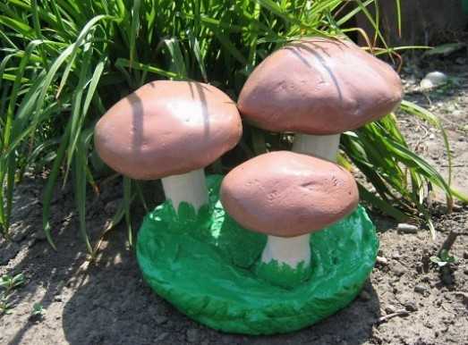 Чтобы изготовить бетонную скульптуру, необходимо приготовление цементно-песчаного раствора. Для этого нужно смешать песок с цементом (пропорция 1:3). Затем необходимо, используя подручные материалы, соорудить каркас для будущей садовой скульптуры. Если вы хотите сделать грибок, гусеницу или черепаху, для каркаса подойдет жесткая проволока, которая загибается в определенном направлении.