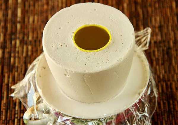 Следующий этап — разводим небольшое количество гипса для создания ножки. Для экономии гипса в ножку можно поместить небольшую бутылку и затем уже залить гипс и оставить ножку застывать.