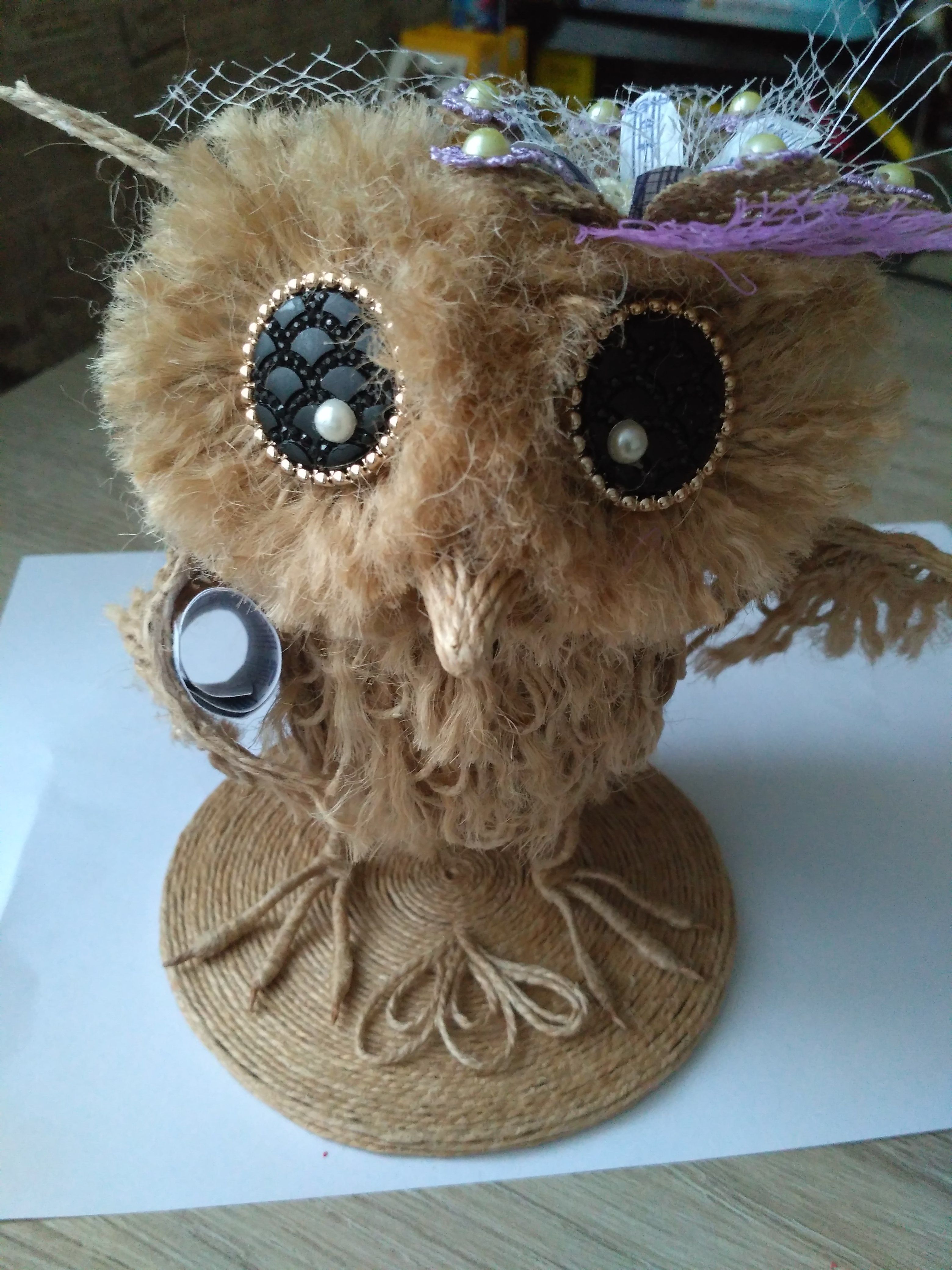 Готовую птичку вы можете украсить бантиком. У совушки-девочки бантик можно разместить на голове или на груди, А филину-интеллектуалу очень подойдет элегантная бабочка на шее.
