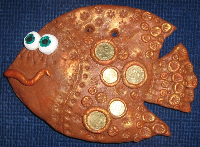 Соленое тесто — отличный материал для творчества, из него можно сделать все, что угодно. Давайте посмотрим, как сделать необычный элемент декора, который может радовать не только вас, но и быть оригинальным подарком, тем более, что его вариантов можно придумать массу — денежную рыбу из соленого теста.