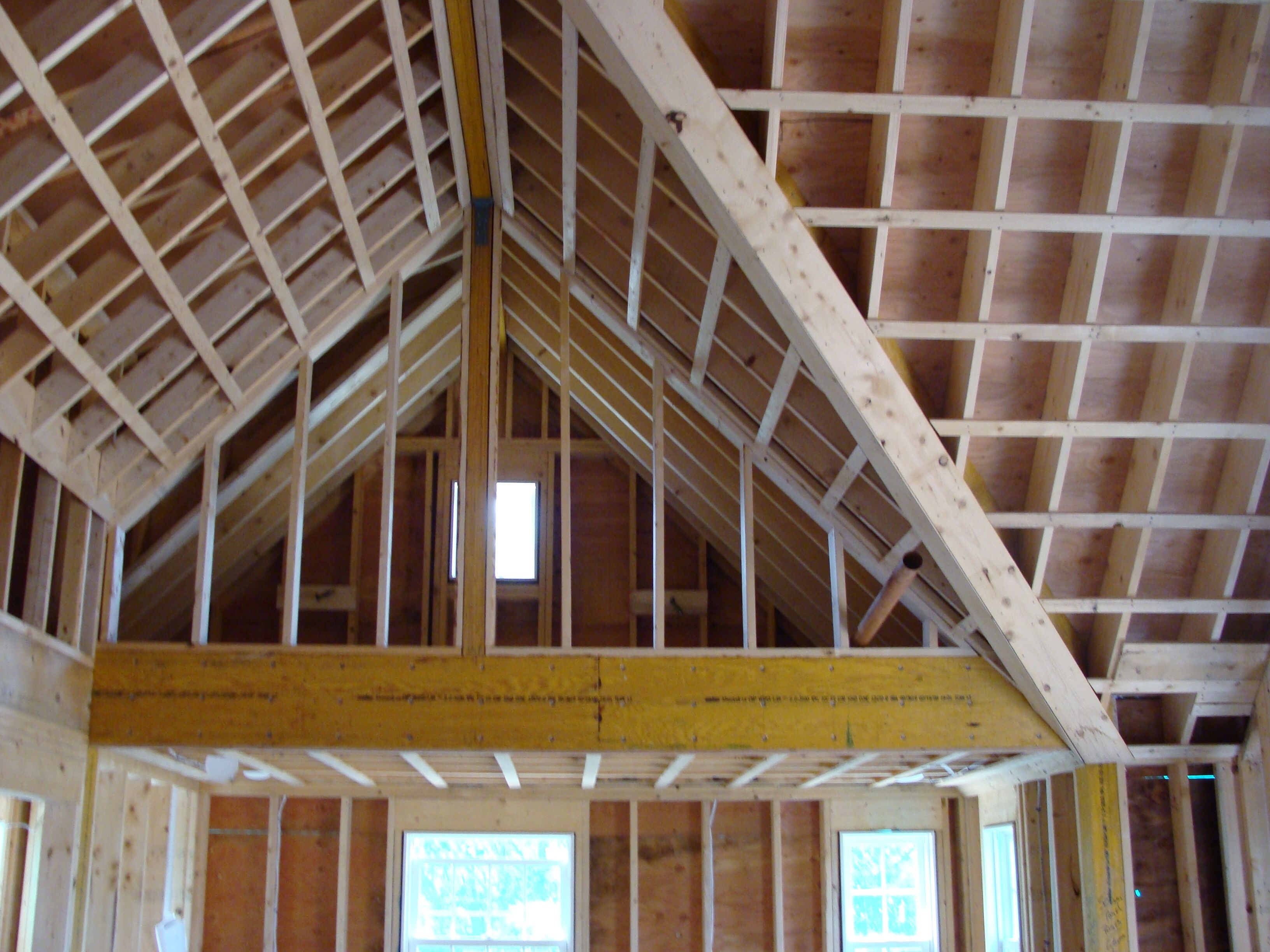 Передает нагрузку на крышу на коньки фронтона или стойки и поддерживает коньки стропил на коньке.Он может быть под стропилами для поддержки, или стропила могут быть привязаны к нему для поддержки.