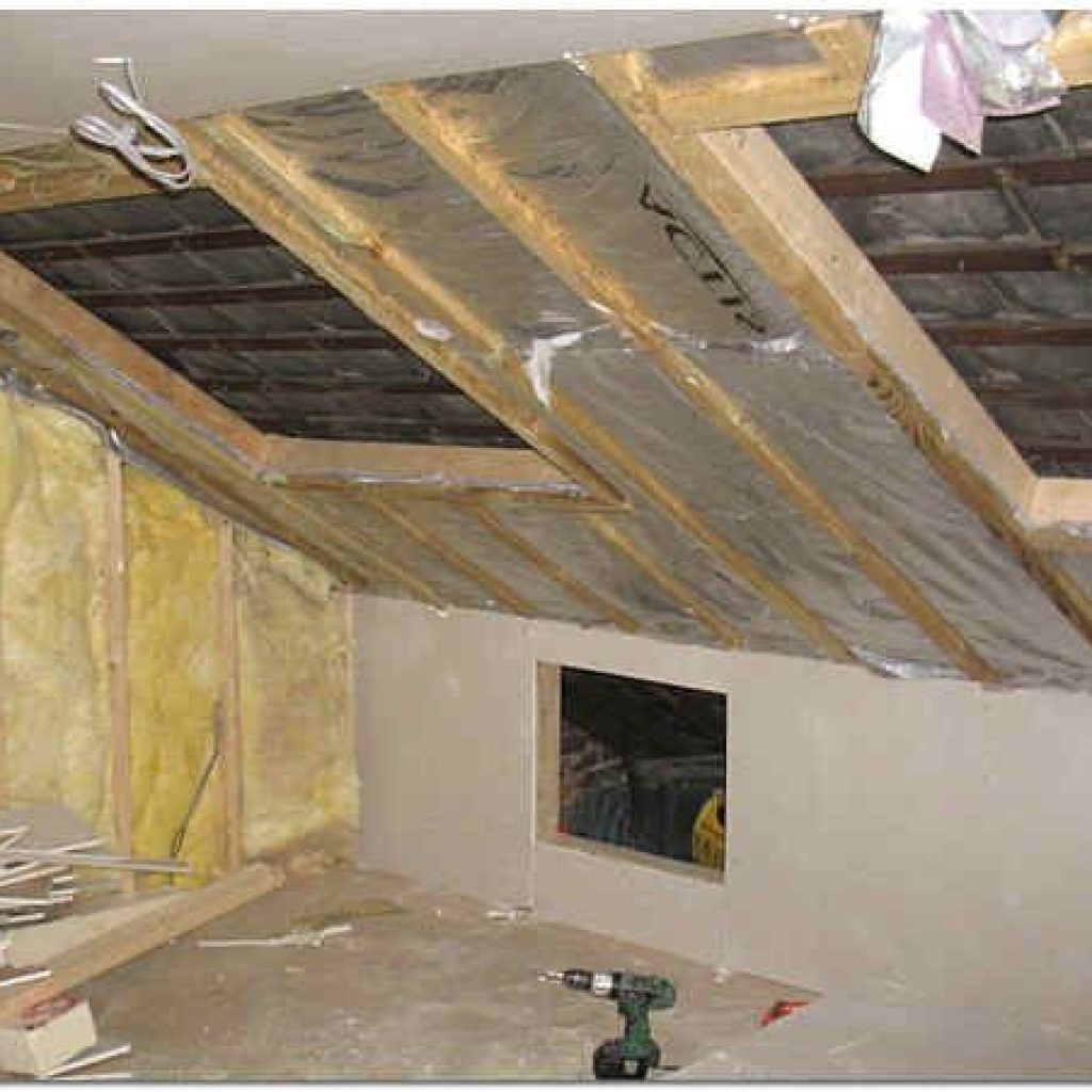 - Подвесной потолок. Здесь между перекрытием и подвесным потолком оставляют 8-10 см пустого пространства, где кладут утеплитель или же организовывают вентиляцию.