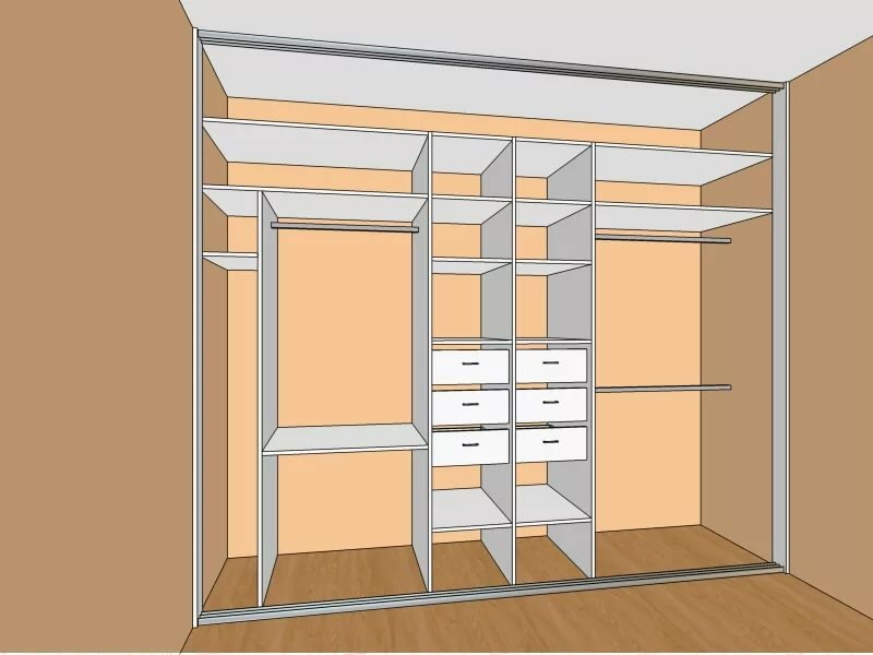 Чтобы детально разобраться в подобных нюансах, необходимо изучить саму конструкцию шкафа-купе. Можно составить уникальный индивидуальный проект, по которому удастся собрать оригинальную модель. Хорошим подспорьем могут стать программы, позволяющие создать виртуальный макет будущего шкафа – например, «Pro100» или «Базис-мебельщик».