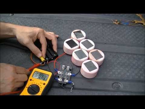 После соединения солнечных батарей вместе проверьте цепочки, чтобы убедиться, что они работают правильно и обеспечивают правильное напряжение в вольтах и амперах. Поместите цепочки солнечных элементов на солнечный свет и с помощью мультиметра проверьте значение напряжения и тока, поступающих от каждого солнечного элемента каждой цепочки.