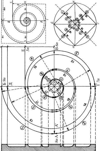 После проверки спирали по шаблону излишки обрезаются, а саму спираль приваривают к пластине и к центру.