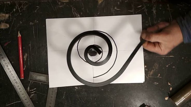 Все размеры должны быть точно соблюдены, вплоть до соответствия толщина металлической полосы толщине контура формы на чертеже. Кстати, минимальная толщина должна быть не менее 3-х мм. Расстояние между витками также должно быть достаточным, чтобы между ними вмещался пруток для деформации. Если, скажем, размер вашего прутка 10 мм, то самым оптимальным будет расстояние между витками 12 — 13 мм.