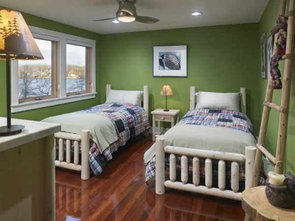 - Зеленый — универсальный цвет для детской как мальчика, так и девочки. Подойдет и как базовый, и для оформления любой из зон в комнате. Этот природный оттенок способствует прекрасному настроению малыша, поддерживает его крепкий и здоровый сон.