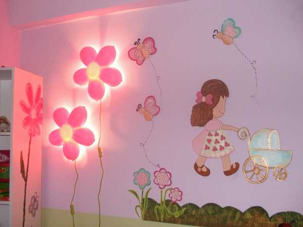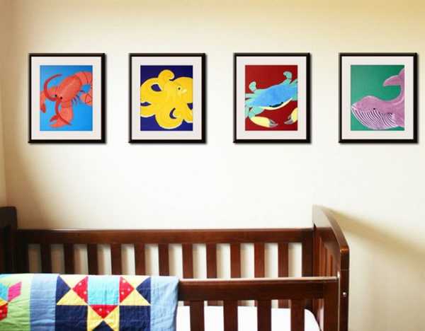 Декорирование стен детской комнаты картинами, выполненными своими руками
