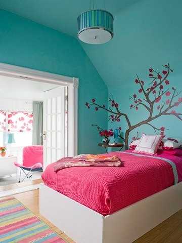 Что касается цвета, то традиционный розовый все чаще используется в сочетании с другими оттенками. Нежный желтый, голубой, сиреневый, даже фиолетовый, серебристый и золотой — желанные гостьи в девичьей спальне. Оранжевый и зеленый — тоже замечательные оттенки, поднимающие настроение девочек.