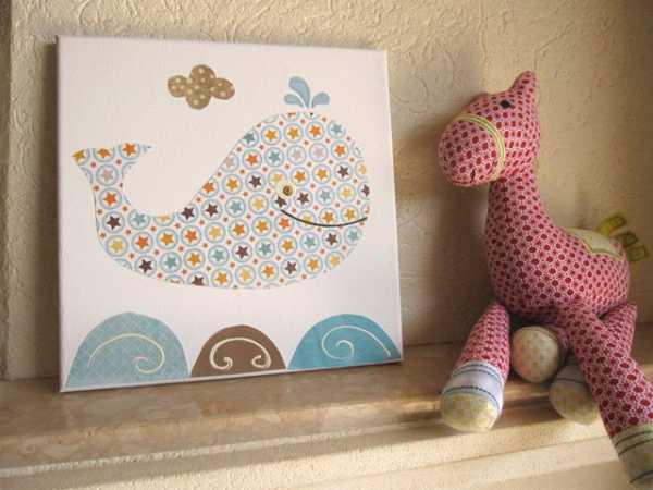 Здесь можно полностью положиться на свое воображение и создать поистине великолепные шедевры. Если малыш еще слишком мал, то можно сделать поделки самостоятельно, а если уже подрос и знаком, к примеру, с искусством рисования, то было бы хорошо заняться изготовлением картин совместно. Это могут быть как отдельные яркие и красочные рисунки, так и аппликации из ткани и бумаги, обрамленные в фоторамки или сделанные как пано.