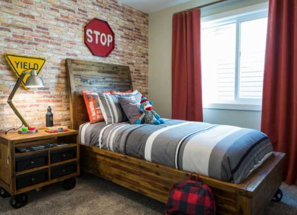 Отделка кирпичом предпочтительна в комнате для детей более старшего возраста. Кирпич в светлых тонах создаст необычную акцентную плоскость, которая в сочетании с эффектным декором позволит персонализировать помещение.