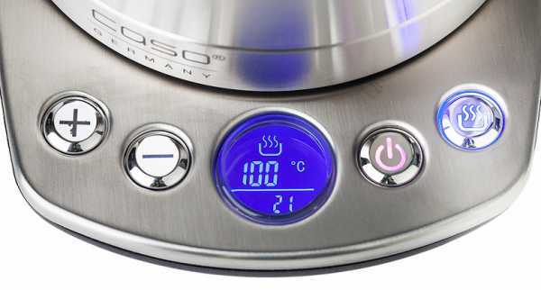 В функциональных электрочайниках присутствуют механические или сенсорные кнопки для настроек, расположенные на корпусе или на панели с нагревателем и информативные дисплеи.