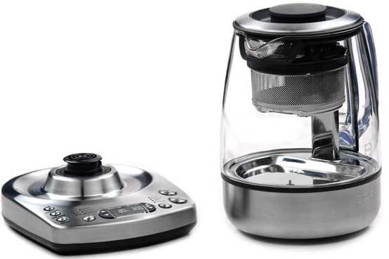 Чаеварка – особый электрочайник, в котором все придумано для заваривания чая. Этот модный прибор работает по принципу кофеварок-эспрессо. Внутри сосуда находится емкость для чая, трав и других смесей. Кипящая вода проходит сквозь листики и наполняется вкусовыми и ароматическими свойствами. Интенсивность напитка можно регулировать. Подогревающая платформа сохраняет температуру.