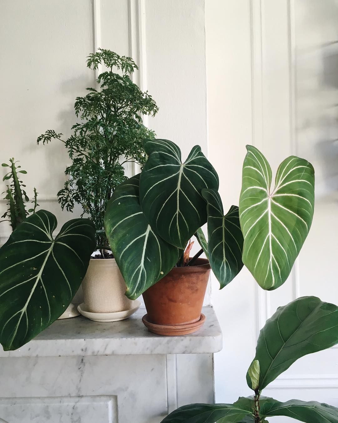 Если у вас не всегда самый зеленый палец, Потос — это ответ! Это выносливое вьющееся растение имеет глянцевые пестрые листья, которые прекрасно украшают комоды, полки или подвесные горшки. Предпочитает умеренный свет, но выдерживает слабое освещение. Дайте ему высохнуть между поливами.