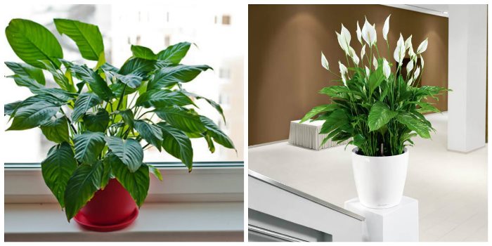 - Спатифиллум, благоприятен для полутенистых и затененных мест. Он очищает воздух от веществ, которые могут испускать ковры, мебель и пластик.