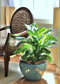 В спальне можно создать настоящий оазис, но никак не оранжерею. Во-первых, сам характер спальни не приемлет визуальной дробности, «беспокойства». Во-вторых, все мы хорошо помним, что именно по ночам растения выделяют углекислый газ, поглощая кислород. Поэтому лучше выбрать немного растений, но выразительных форм и достаточно крупных размеров, при условии, что помещение просторное. Одно такое растение можно позволить себе даже в маленькой спальне.