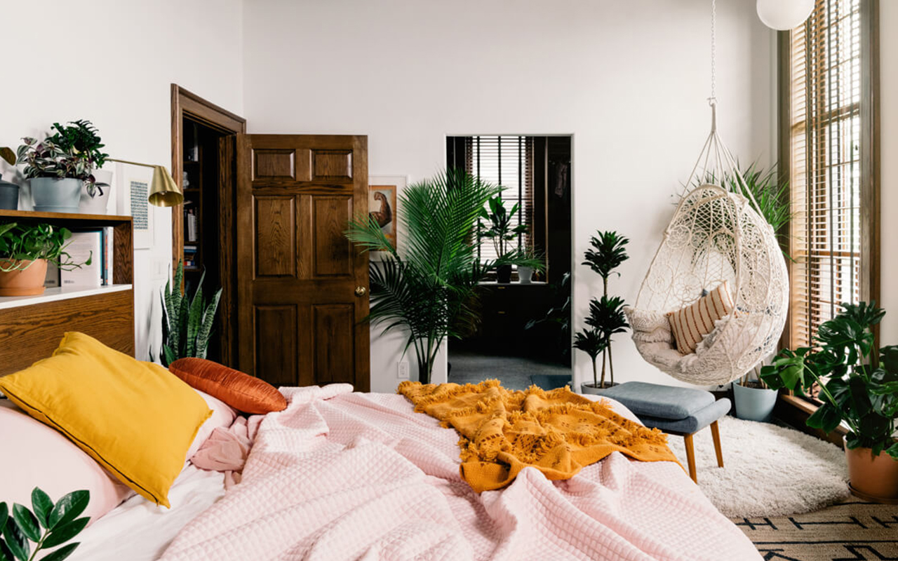 В спальне важно все: цветовые сочетания, свежий воздух, удобный свет, комфортная и красивая мебель — и растения, которые свяжут воедино все это и «оживят» интерьер.