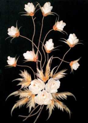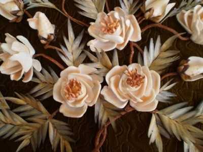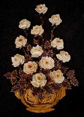 При подборе твоческого материала хороши ракушки с Арабатской стрелки( по своему опыту). Здесь особого труда не составляет просто склеить ракушки , они сами ложатся. Есть ракушки -привозные из-за границы, у нас они продаются в наборах. И есть ракушки как бы с известковым налётом, они тяжелее обычной ракушки. Вот здесь роза получается с неповторимыми изгибами, вторую такую сделать нереально. Такие ракушки собирают после шторма, охотников