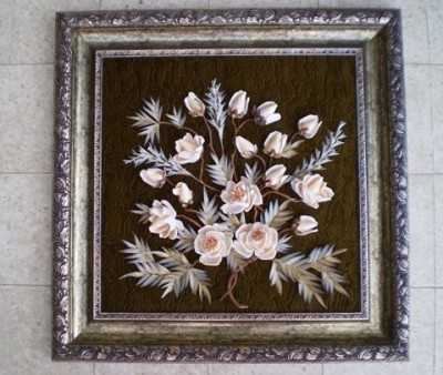 Затем выкладываем цветы на основу , это может быть картина на рамке, либо на тарелке- всё зависит от вашей фантазии.На картине нужно сделать фон.Это может быть сизаль, Либо декоративная сетка,все зависит от ваших желаний.