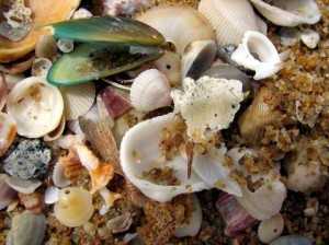 Для ее изготовления мне понадобились ракушки четырёх видов: мидии (иссиня-черные перламутровые), белые большие двустворчатые ракушки и маленькие сердцевидные (т. н. капеты), а также спиральные раковины.