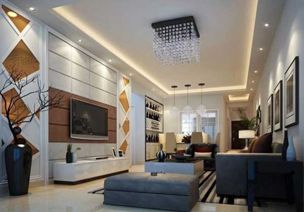 Двухуровневая конструкция правильной формы отличается отличным декоративным эффектом и вместе с тем она доступна для обустройства даже непрофессионалу - Монтаж выбранной фигуры на удалении от стен. Чаще всего композиция размещается в центре комнаты. Это может быть круг, квадрат или прямоугольник, но при желании форму можно сделать более сложной. Для такого решения характерна не только четкость, но и тяга к абстракции. Примером может служить множество неровных треугольников, разбросанных на поверхности.