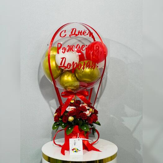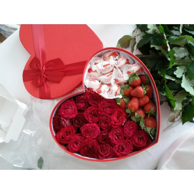 Розы Мисс Пигги и конфеты Raffaello в коробке