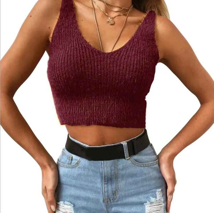 Трикотажный стильный женский укороченный кроп топ в обтяжку, летный молодежный топик короткий малиновый