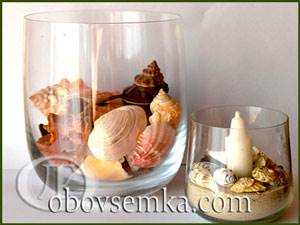 Вариант 1. Композиция из ракушек в стакане или вазе.