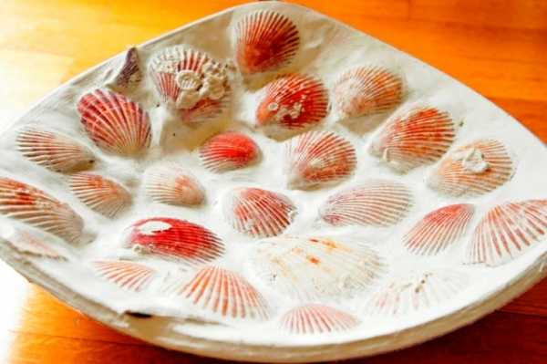 Тарелка, декорированная морскими ракушками напомнит о морском бризе.
